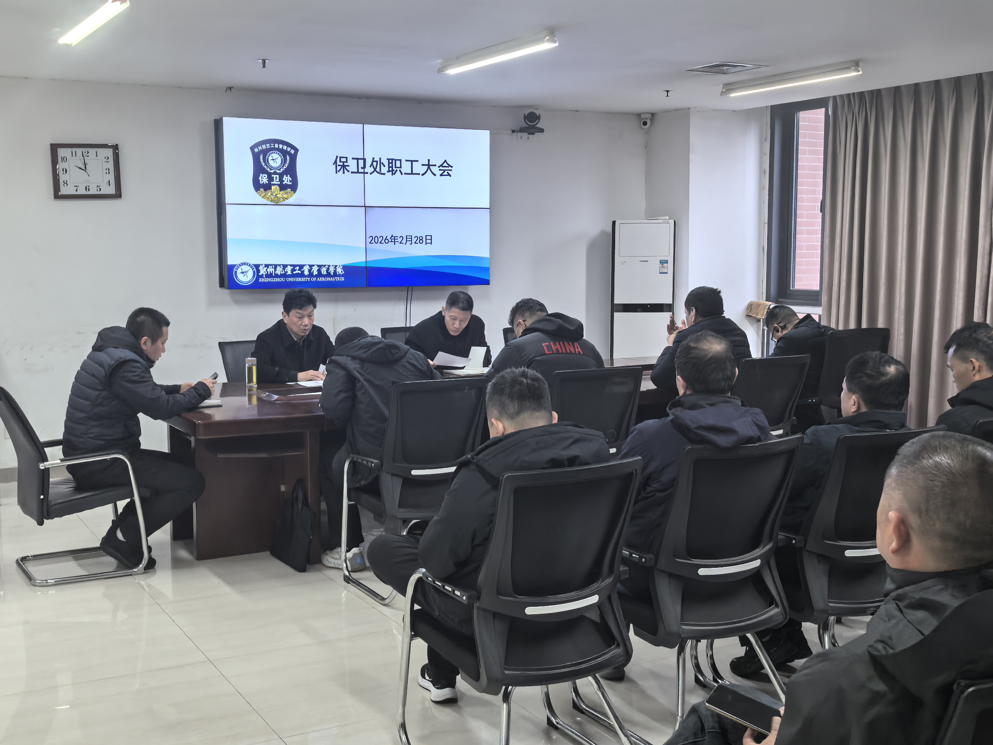 会议伊始,邢金善副处长传达了学校中层干部会议精神,强调全体保卫人员要深刻领会会议要求,将思想和行动统一到学校的发展大局中来。