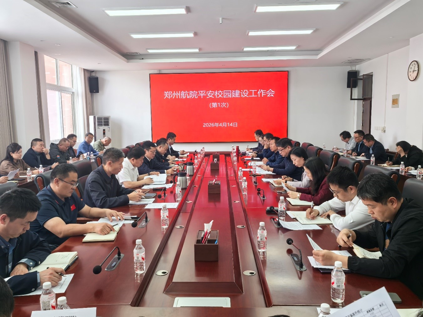 4月14日,学校召开2026年度平安校园建设工作会第一次会议,校党委副书记李广锋出席会议并讲话,会议由副校长程骄杰主持。平安校园建设委员会相关成员单位负责人及22个教学院部书记参加会议。